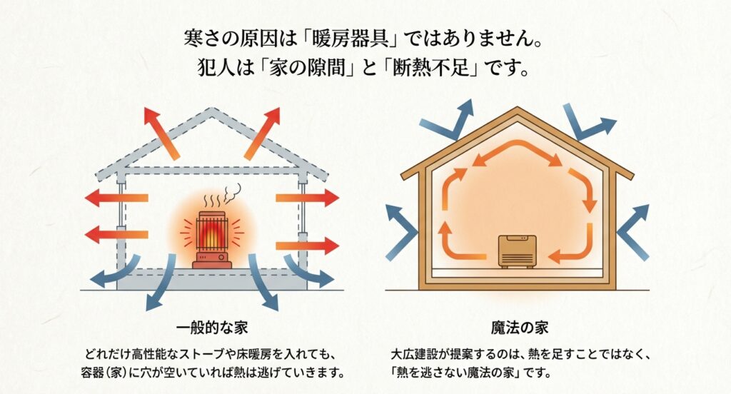 特別な暖房器具がなくても、素足で歩けるほど暖かい。そんな「魔法のような家」には、私たちが現場で積み上げてきた確かな「数字」と「こだわり」の秘密があります。