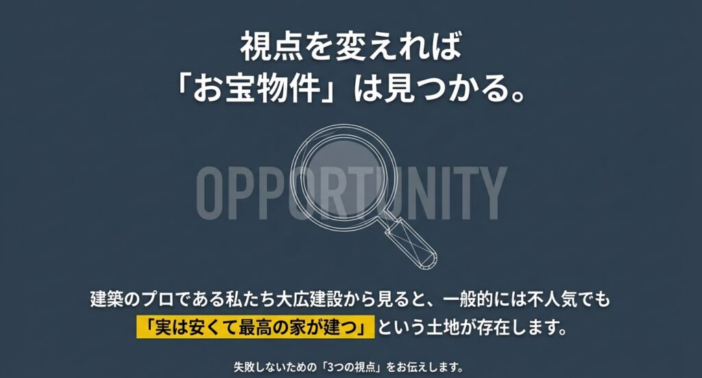 「一般的には不人気だけど、実は安くて最高の家が建つお宝物件」というものが存在します。
