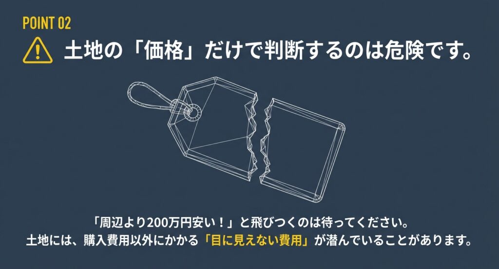 「周辺より200万円安い土地を見つけた!」と喜んで飛びつくのは、ちょっと待ってください。
