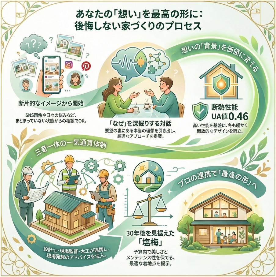 あなたの「やりたい」を、プロの視点で「最高の形」に。対話から生まれる、後悔しない設計のコツ。