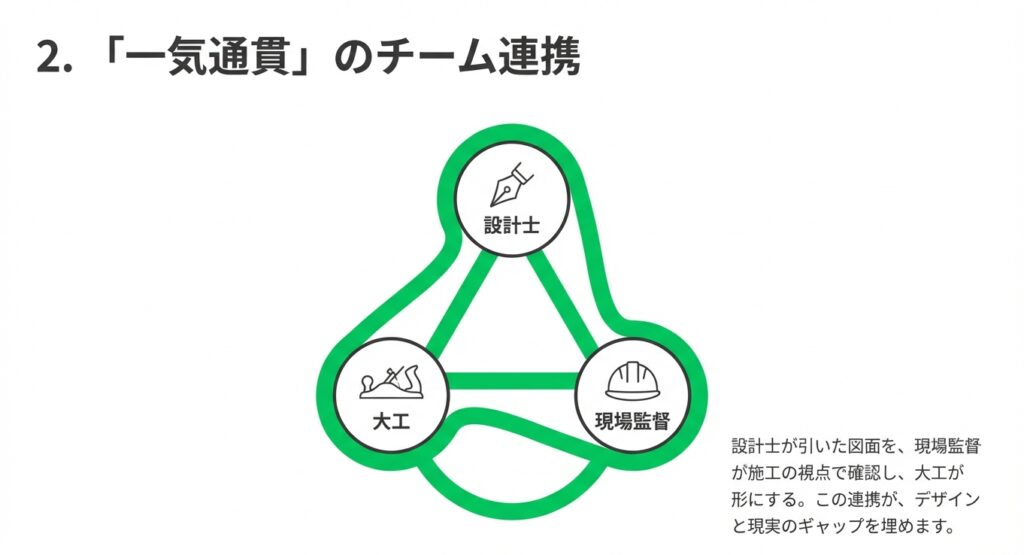 このチームの連携があるからこそ、お客様のこだわりを予算内で、より長く、より美しく保てる「ちょうどいい塩梅」の着地点が見つかるのです。
