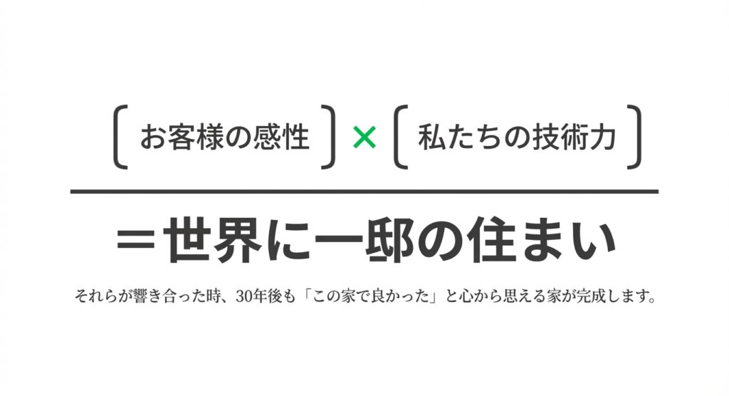 それらが響き合ったときに、30年後も「この家で良かった」と心から思える、世界に一邸の住まいが完成します。