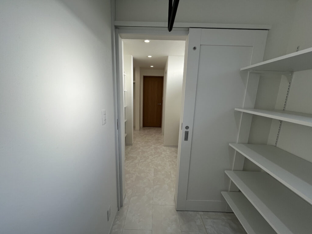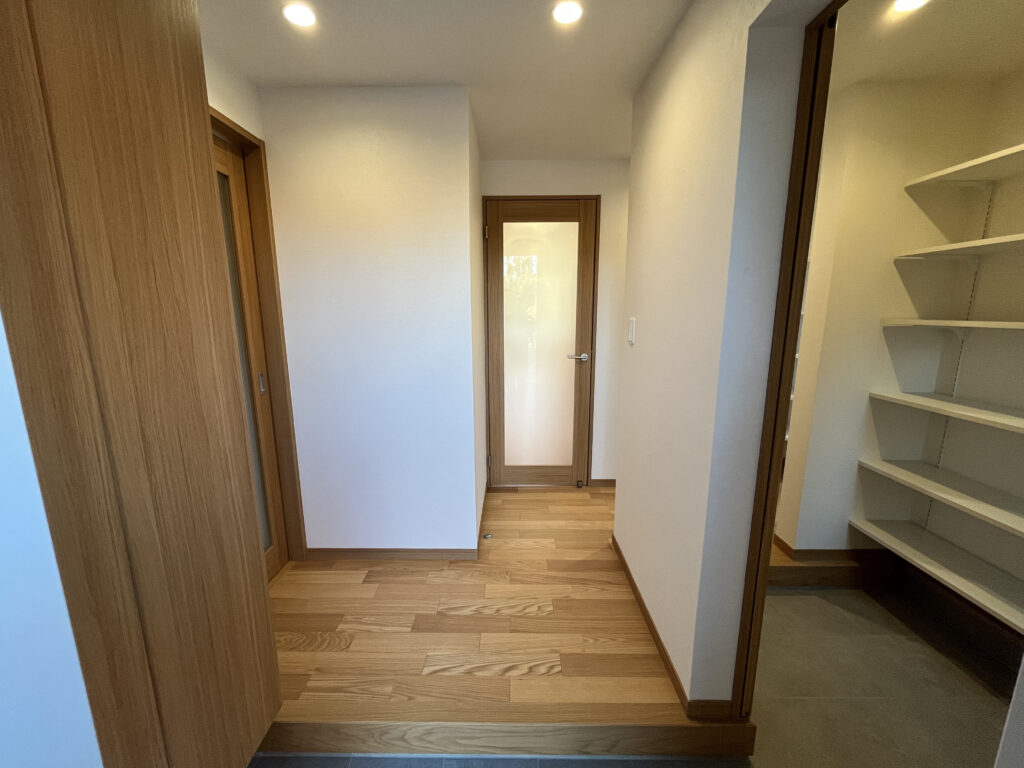 - 「二世帯」の心地よい距離感: お母様とご夫婦、二世代が共に暮らす住まい。それぞれのプライベート空間を確保しつつ、自然と顔を合わせられる共用スペースを配置しました。生活動線が重なりすぎない工夫を凝らした、ストレスフリーな設計です。