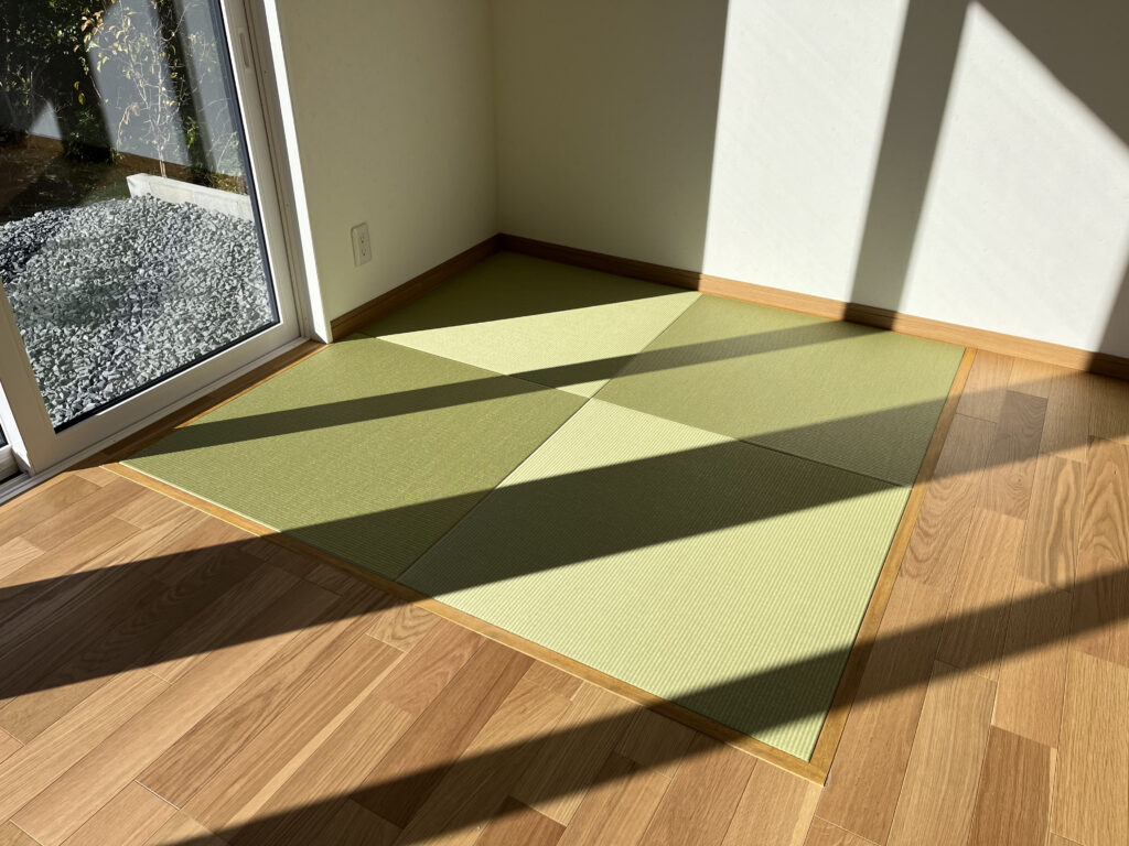 「駐車スペースも広くて使いやすいし、家の中も本当に素敵。特に悩んで決めた2畳のタタミスペース、作って本当によかった!なにより家中がどこにいてもあったかいんです。素敵なお家をありがとうございました」